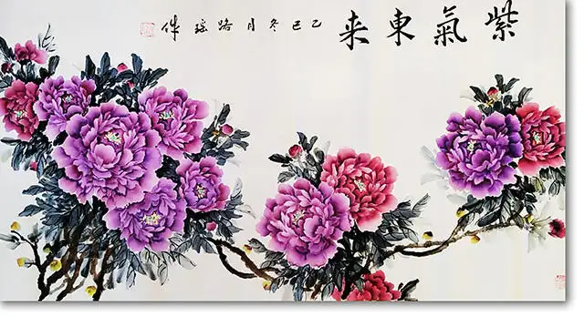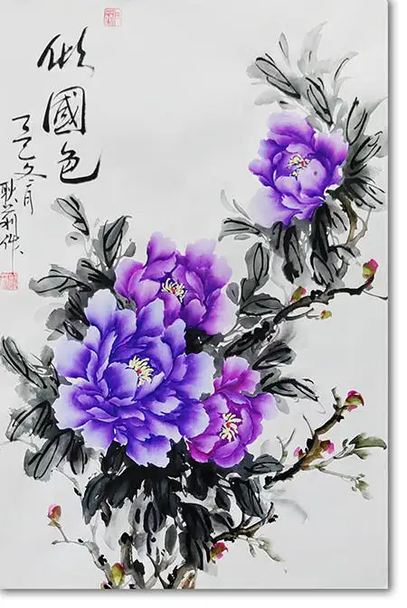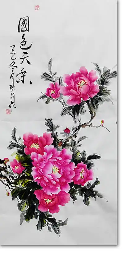一次偶然的邂逅,让她与"会派牡丹"结缘。李会老师所创立的这一画派,以其灵动、洒脱、飘逸、奔放的独特画风,深深打动了她。自此,她便如痴如醉地投入到牡丹的研习之中。