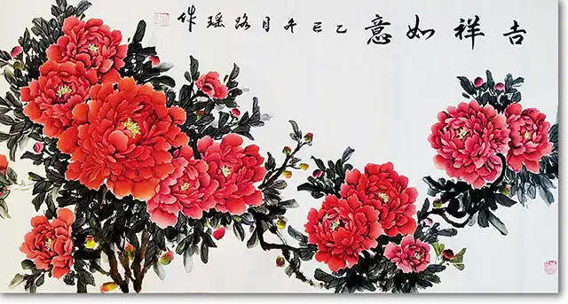 她不仅掌握了会派牡丹的技法精髓,更将"学无止境"的艺术追求融入了自己的创作生命。每一次落笔,都是她对美的重新发现;每一幅作品,都是她向更高艺术境界的攀登。 难能可贵的是,耿莉并未将自己局限于对牡丹自然美的描摹。她以艺术家的敏锐洞察力,将个人的艺术创作与时代的精神风貌紧密相连。