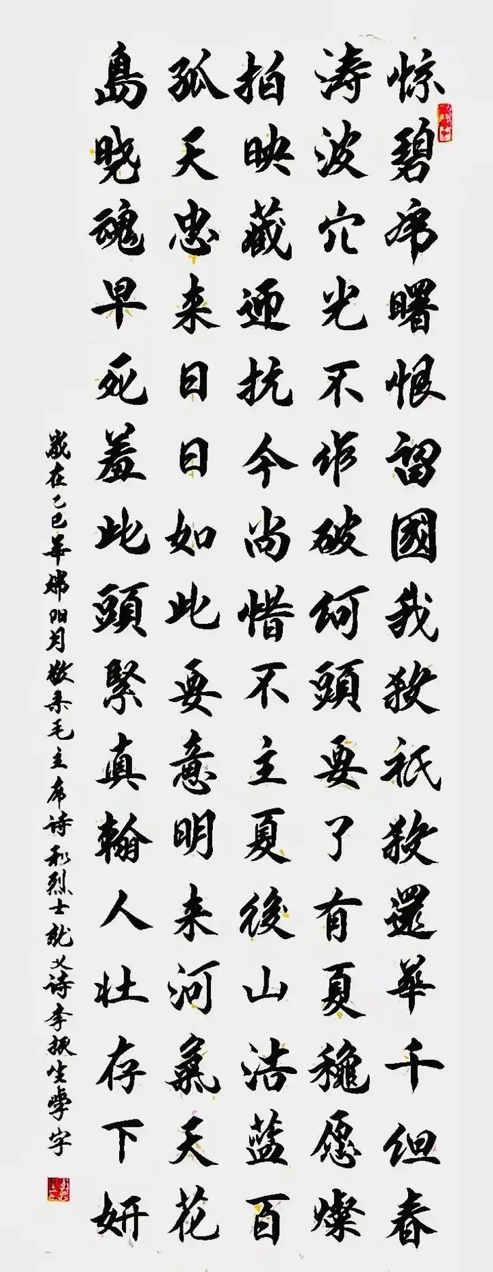 代表作品楷书:《颜勤礼碑》临本、《心经》册页、行书:《苏轼词选》长卷、《兰亭序》临本。