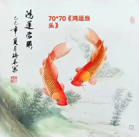 此作以荷花、锦鲤为核心,构建充满生活气息的吉祥图景。墨色荷叶浓淡干湿变化尽显功底,粉色荷花绽放于叶间,纹理与花蕊栩栩如生。三条锦鲤色彩斑斓,姿态灵动,为画面注入生机。题款“满堂和气”点明主题,将文人画笔墨与民间吉祥符号完美结合,让“生活气息”升华为雅俗共赏的审美体验。