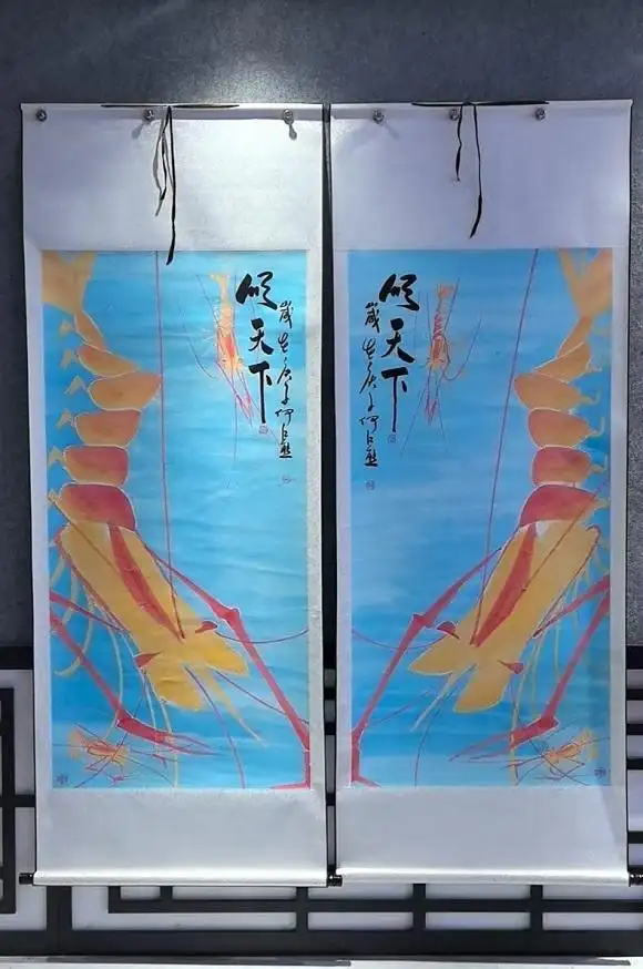 在代表作《中国龙》中,他大胆摒弃传统宣纸,选用黑色绢帛为底,以金墨绘虾,朱砂点睛。黑、金、红**三色的强烈碰撞,既承袭了传统中国的色彩文化基因(金为贵,红为吉),又赋予了画作震撼的现代视觉冲击力。这使得“虾”从清雅的水墨小品,升华为富丽堂皇、象征祥瑞的“中国龙”文化符号。