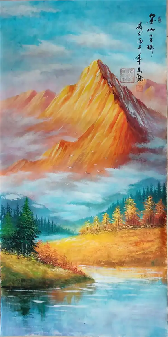 《金山呈瑞》《中国梦》《黄土风情系列》为马翰先生2026年潜心创作的扛鼎之作,作品以三尺竖幅,四尺整张,小六尺宣纸创作,采用传统山水技法,兼施泼墨与工笔,构图恢弘大气。画面主体以层峦叠嶂的金山为核心,主峰巍峨挺拔,辅以缭绕的祥云、苍劲的迎客松,既延续了“金山”象征富足、“祥云”寓意吉祥、“长城”代表龙文化,又通过光影晕染的现代技法,使金山呈现出鎏金般的质感,呼应“呈瑞”主题。作品色彩浓淡相宜,笔墨苍劲有力,既展现了传统山水的雄浑意境,又传递出“国泰民安、福运绵长”的时代期盼,与2026马年“龙马精神、万象更新”的文化氛围高度契合。