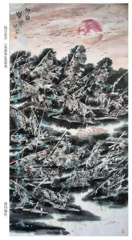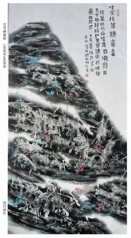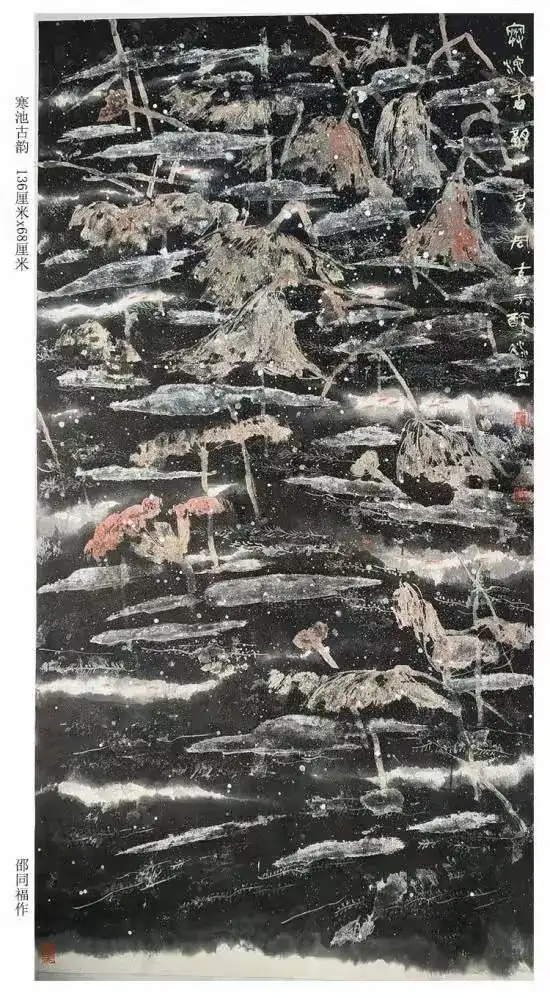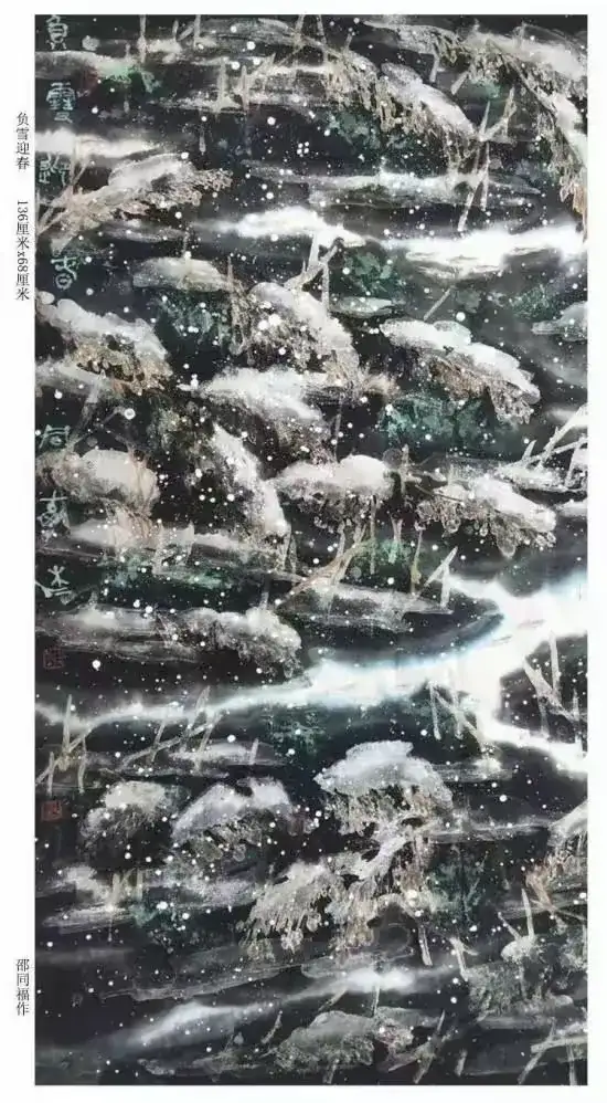 从长江之滨到冰雪圣殿,邵同福用半生孤诣完成艺术的破冰远征。当矾墨在宣纸上凝结出第一朵冰花时,中国花鸟画千年史册已然翻开新页!那些严寒中绽放的红梅,雪中独立的寒雀,冰层下游动的鳞介,不仅是自然的礼赞,更是一个民族在艺术长河中凿冰前行的精神图腾!