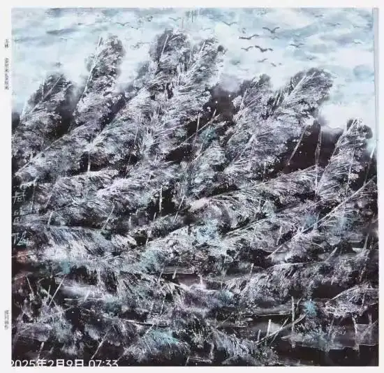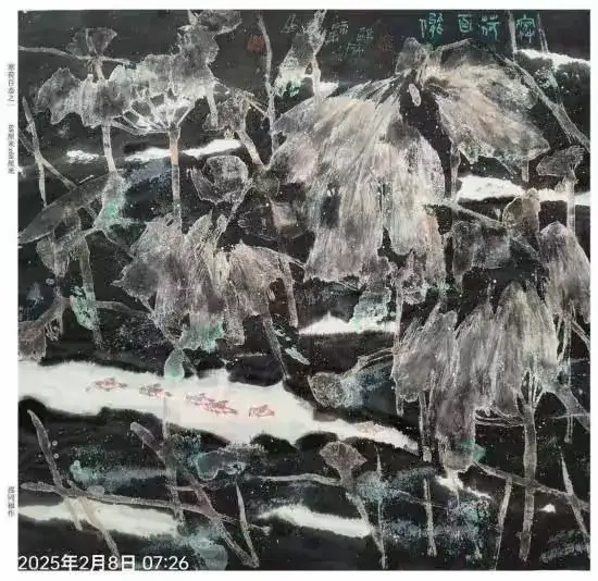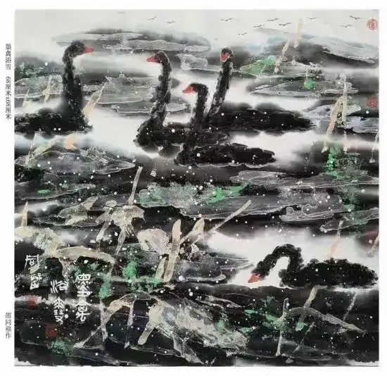 拓展题材边界:将传统花鸟画从春夏秋三季延伸至严寒之冬 。重构审美范式:在"计白当黑"外,开创"以矾塑型"的视觉语法。升华精神内涵:冰雪从背景升华为承载哲学思考的主体。