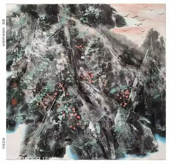 邵同福的创举远不止技法突破,他重新定义了中国花鸟画的时空范畴: