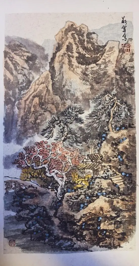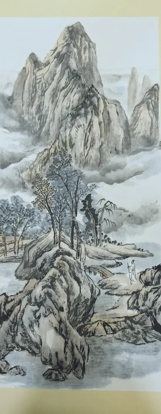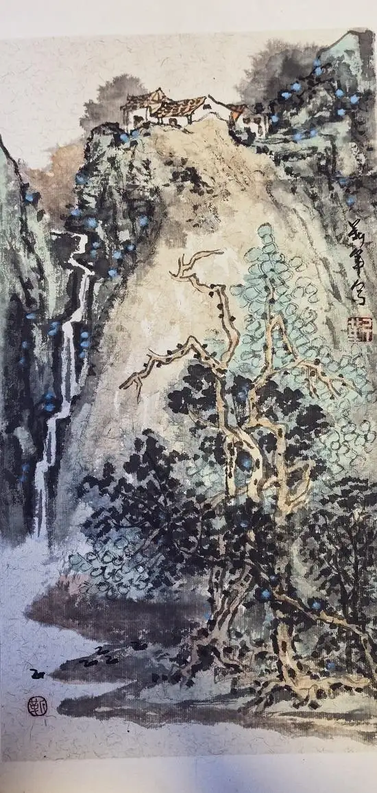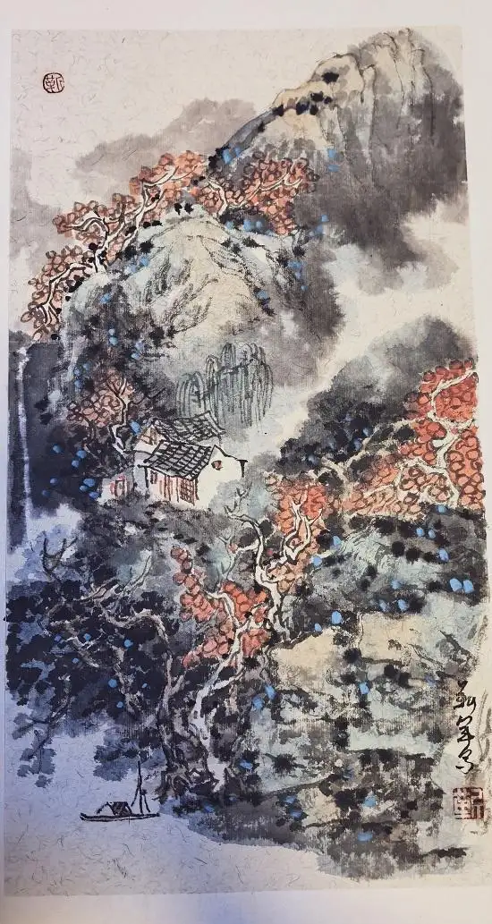 他的国画作品,涵盖人物、山水、花鸟,风格清新隽秀、空灵秀逸,格调典雅,备受赞誉,被多家军史馆、纪念馆及海内外藏家收藏 。