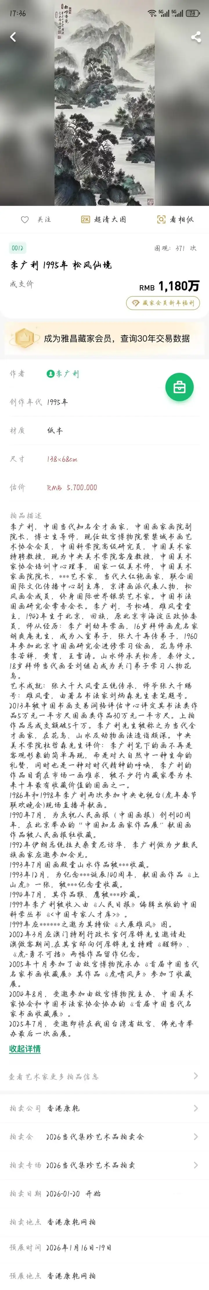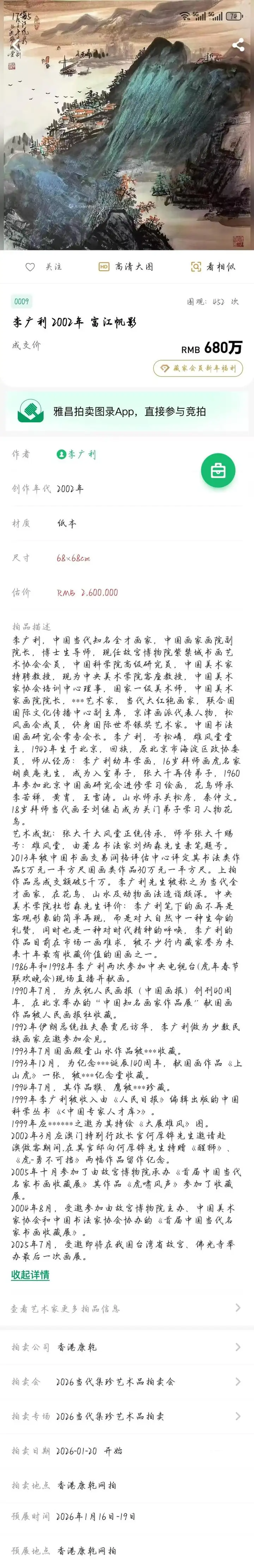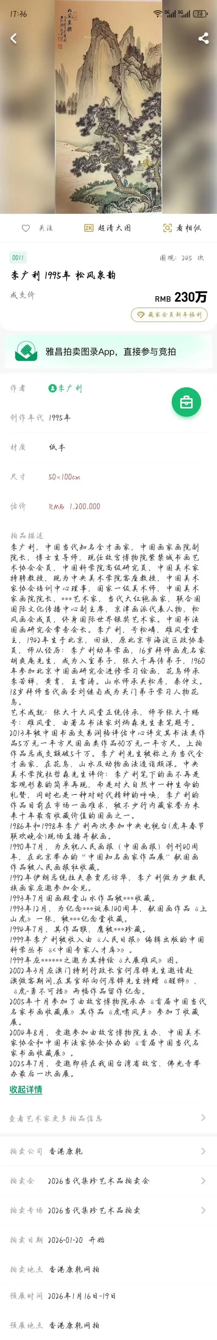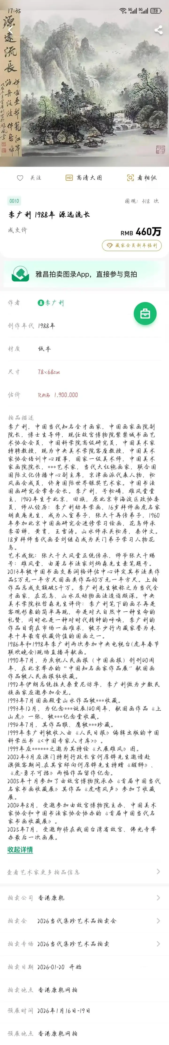 笔墨风华 —— 李广利作品臻藏启幕于香港康乾拍卖公司