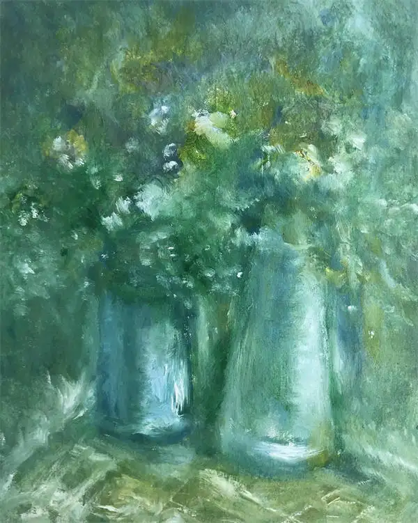 苦乐相行,人生几何!回想起飞机飞翔的刹那间,窗外渐渐逝去了寒冬的萧瑟,当再穿过云层,满眼江南绿意。微雨中的西溪景致弥蒙,岸边屋宇隐现。在杳渺的天空中,日光忽明忽暗洒落在云絮间。 随处可见的绿植、城市的街景、山顶的小屋、氤氲的山峦、绿润的茶园、盛开的鲜花与落英缤纷……,变换的视觉印象很想把它表达出来,或许是少年时期的懵懂在心底发芽。