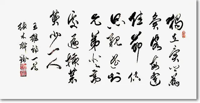 自小酷爱书法的张木联先生,幼承家学,在碑帖的海洋里扬帆求索,先后以颜真卿《多宝塔碑》等楷书,怀素《自叙帖》《圣母帖》、孙过庭《书谱》等草书为范本,临摹研习不懈。他深谙“取诸家之长,成一己之格”的艺术真谛,在临帖过程中博采众长,将颜体楷书的方正庄严、骨力洞达,与怀素草书的奔放洒脱、婉转灵动,以及孙过庭《书谱》的潇洒飘逸、法度谨严融会贯通,逐渐形成了独属于自己的书法特点与艺术风格。就字体而言,张木联先生尤为擅长真、行、草三体,其楷书结构严谨,用笔方整,秀劲圆润,一笔一画都透着对传统法度的敬畏与坚守;行、草书则行笔峭劲遒丽,自然流畅,笔墨流转间尽显书写者的才情与意趣;而在款式布局上,他的草书更是章法有序,布白错落有致,于疏密开合间营造出超轶不凡的风度,观之令人心神激荡,回味无穷。