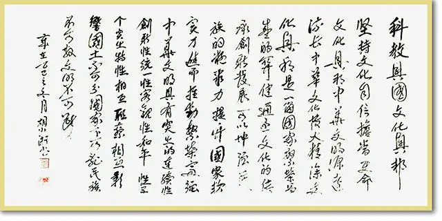 此外,这幅作品还具备重要的社会价值。在快节奏的当代生活中,“龙马精神”所传递的积极进取、自强不息的精神,能够激励人们在面对挑战时保持昂扬斗志,在追求梦想时坚守初心。胡小衛先生作为一名中共党员,始终以笔墨传递正能量,其作品不仅是艺术创作,更是精神引领,通过书法这一喜闻乐见的形式,将社会主义核心价值观与传统文化有机结合,为社会注入积极向上的精神力量。同时,他积极参与各类艺术交流与公益活动,推动书法艺术走进大众生活,让更多人感受到传统文化的魅力,为提升国民文化素养、构建和谐社会贡献着自己的力量。