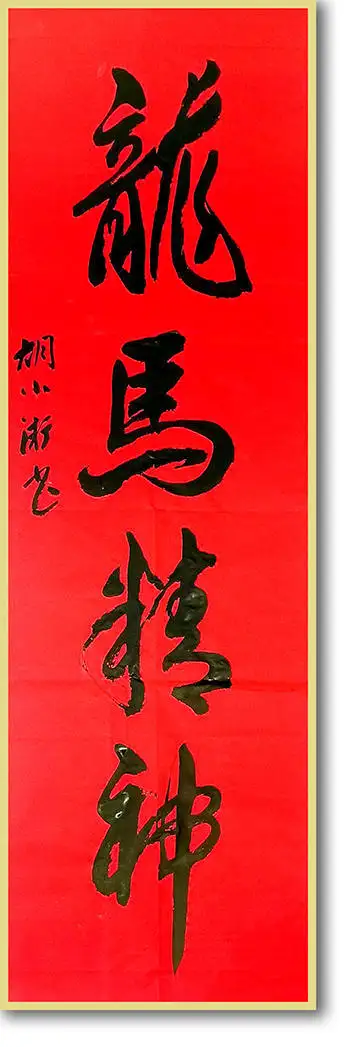 从文化价值而言,《龙马精神》不仅是一件书法作品,更是中国传统文化的当代传承。“龙马精神”出自《周易·乾卦》,“天行健,君子以自强不息”,历经千年演变,已成为中华民族精神的象征,代表着中国人刚健有为、积极向上的精神风貌。胡小衛先生以笔墨为媒,将这一文化符号赋予新的生命力,通过书法艺术的形式,让古老的精神内涵在当代社会中焕发新生。作品中蕴含的文化基因,既连接着历史与当下,也沟通着个人与民族,每一笔墨都流淌着对传统文化的敬畏与传承,每一划线条都彰显着对民族精神的弘扬与践行。在文化自信日益彰显的今天,这样的作品不仅能够满足人们的审美需求,更能激发国人的文化认同感与民族自豪感,成为传承中华优秀传统文化的重要载体。