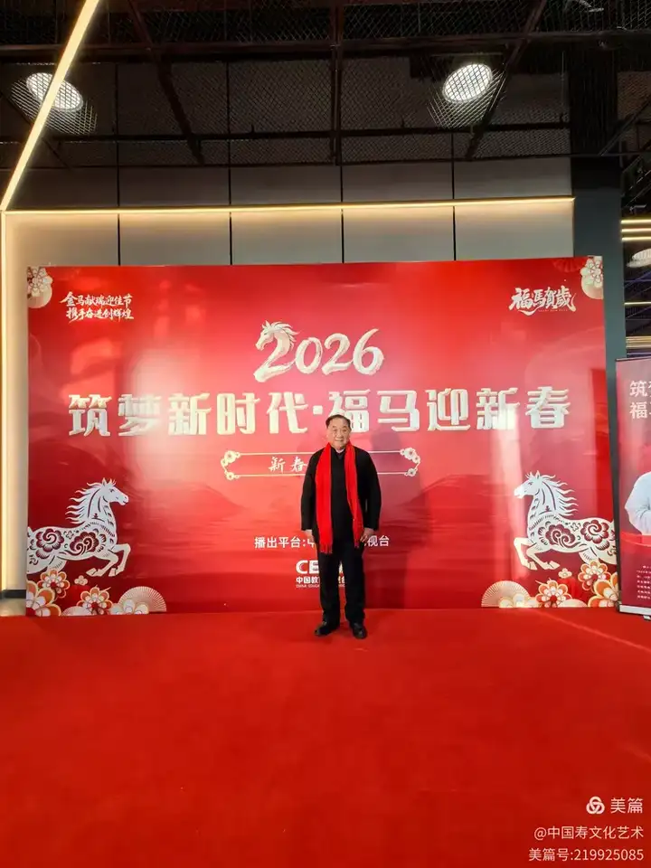 2026年2日上午在北京首钢园演艺制作中心,中国书画家联谊会寿书画艺术委员会会长赵玉杰先生应邀参加了由中国教育电视台的邀请参加了由本台主办的在春节期间从初一到初七轮回播出的《筑梦新时代.福马贺新春》节目的釆访,此节目由著名主持人杨光主持。她开讲到:文化强国,传统文化不断的创新发展是新时代的呼唤,人民的期盼。艺术家们创新出更好更多的优秀的作品来是人民大众日益增长精神文化生活的客观需求,她请赵玉杰会长谈谈他的创新发展。