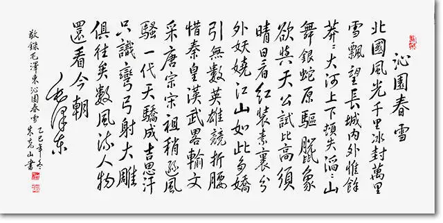 从他书写的毛泽东诗词《沁园春·雪》和《沁园春·长沙》中,可以看到其草书的洒脱与奔放。笔画连绵不绝,气势贯通,将词中的豪迈气概表现得淋漓尽致。