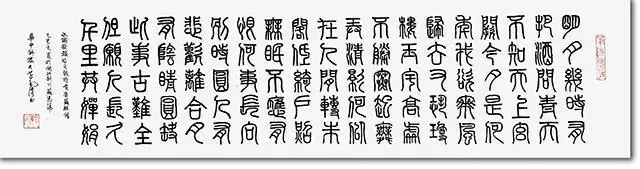 篆书作品虽非其专攻,却也笔线匀净圆劲、结体对称工稳,尽显书法功底的全面性;行书作品流转自然,提按转折灵动多变,以笔墨的节奏呼应词中由望月而生的思绪起伏。五体作品各展风姿,却因统一的词文主题形成有机整体,这背后不仅是毛传信对书法本体的深刻理解,更得益于他跨界的艺术实践——他曾主持德、美、英等国书商在汉高校图书展、全国高校科研成果展等大型美工设计工作,宏观的视觉把控能力让这组作品在章法布局、气韵衔接上浑然天成,于多样中见统一,于变化中藏和谐。