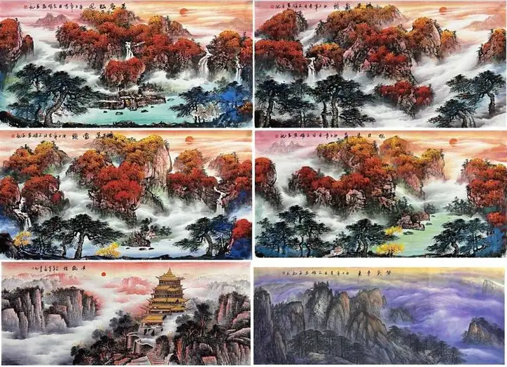 • 《春日瑞景》(系列):以国画的散点透视和油画的焦点透视重构重彩光感