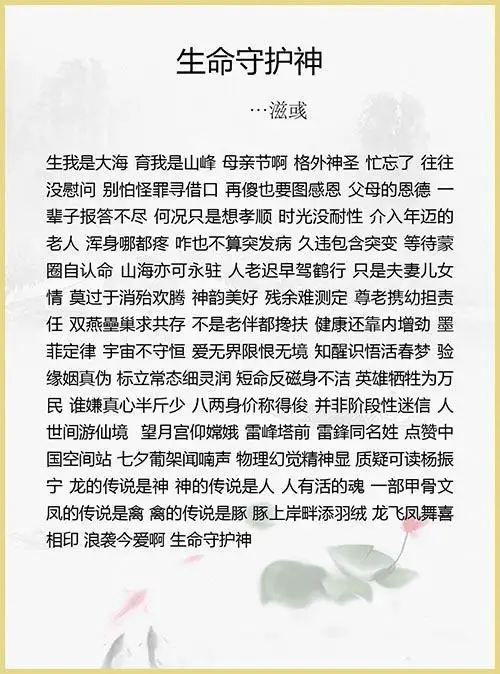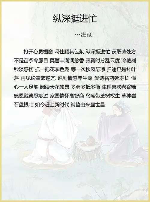 更动人的,是他的作句藏着情感与时代的共振。《生命守护神》里,“母亲节啊 格外神圣 忙忘了 往往没慰问”的愧疚,是卸下所有身份后的柔软本心;《纵深挺进忙》“打开心灵橱窗 呵住顺其包浆”的自我观照,最终落向“赶上新时代 铺垫由来盛世昌”的大气呼应——他的诗从情绪出发,却总能锚定更广阔的情怀:既有普通人的亲情世俗牵绊,也有不同层次的逻辑论理,让“小我”的笔墨,晕染着“大我”的格局。