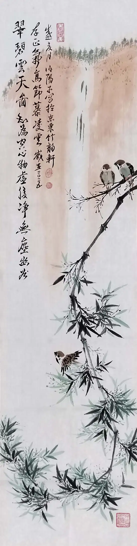 孙正阳的作品《翠碧云天图》在荣宝斋展览,受故宫博物院鉴定专家单国强老师高度点评!