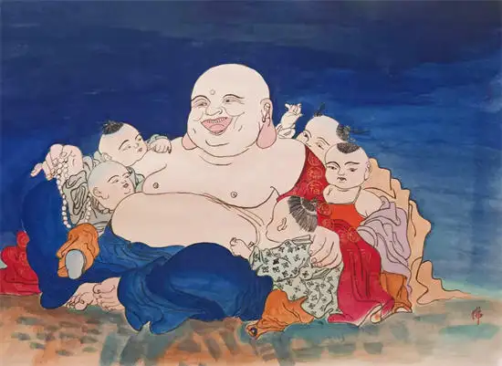当我们凝视这幅画,仿佛能听见孩童的笑闹与弥勒的朗笑交织在一起,穿透画面,直抵心底。这正是梁丽老师作品的魅力:以古典之形,载当代之思,让千年的吉祥意涵,在今天依然温暖而鲜活。