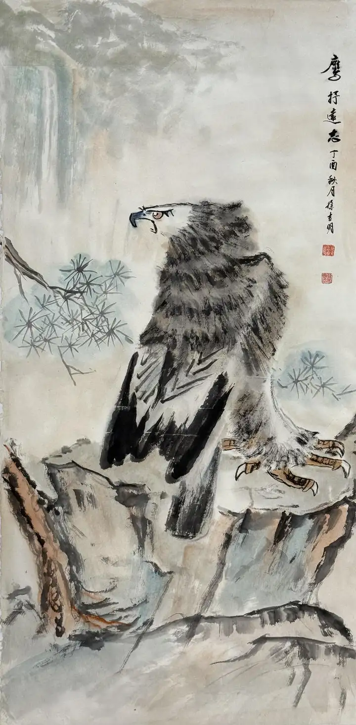 1. 入京写生期间结识李苦禅大师,经其指点创作《松鹰图》。