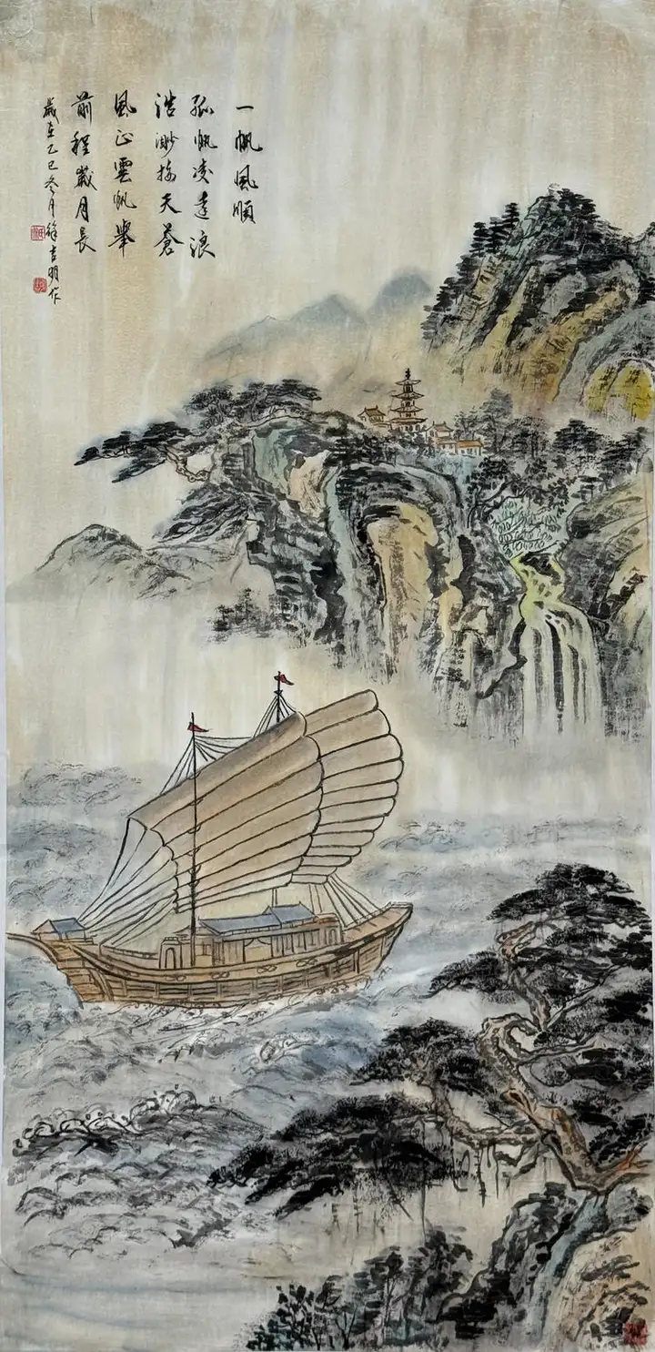 在山水创作中,他深得海派大师陆俨少笔墨意境之真传,笔法灵动、气韵悠远,画面意境开阔深远,形成山水与花鸟兼善、传统与时代相融的完整艺术面貌。