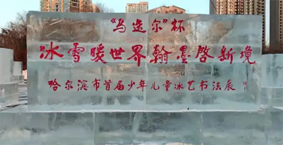 2月6日,“冰雪暖世界翰墨启新境——哈尔滨市首届‘马迭尔杯’少年儿童冰艺书法展,在哈尔滨市妇女儿童活动中心冰上广场上正式拉开帷幕。