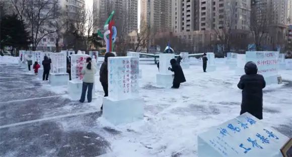 冰雪是上天赐予北国冰城雪都哈尔滨的瑰宝,翰墨是中华民族传承千年的文脉,两者的结合催生了“冰艺书法”这一全新艺术形式,这是将中国传统书法与北国冰雪完美融合全国首创之举;为冰城尔滨冬季增添了浓厚的文化气息.