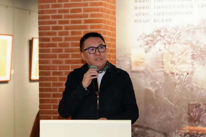 上海市工商联文化商会会长杨震华总结讲话。指出,海派文化是上海作为国际文化大都市的一张闪亮名片,需要与时代同频,以科技赋能,融合国际视野才能永葆活力。市工商联文化商会将坚持通过书画专委会平台,团结凝聚优秀书画艺术家、艺术机构及创意机构,壮大海派书画传承与创新发展“引擎”,成为用艺术厚植文化自信的“践行者”、促进海派文化与时俱进、走向世界的“推动者”,用艺术赋能文旅、时尚产业升级的“引领者”。