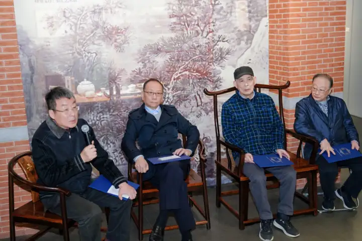 在画人节起源交流环节,当代艺术家车鹏飞先生与八十多年前参与画人节的艺术家谢稚柳、吴湖帆、应野平先生后代谢定琨、吴元京、应黎声共话海派书画发展历程。车鹏飞先生代表画人节组委会发言,他表示:艺术传承的核心在于以文化人,以艺载道,既要让传承人守住艺术根脉,更让受众成为文化的接受者和传播者。通过代际对话,让观众深切感受到海派艺术的历史厚重感与时代生命力。