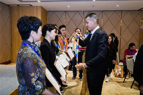 颁奖现场,泰国王室舒坦亲王亲临授奖,为中国当代艺术家赵馨颁发“时代艺术创新奖”,并亲手为其佩戴象征国际文化荣誉的彩色勋章,表彰其在艺术创作领域的卓越成就与突破性创新贡献。这一环节不仅是对赵馨个人艺术造诣的国际认可,更成为中泰两国文化艺术深度交流、友好互鉴的重要见证。