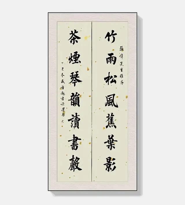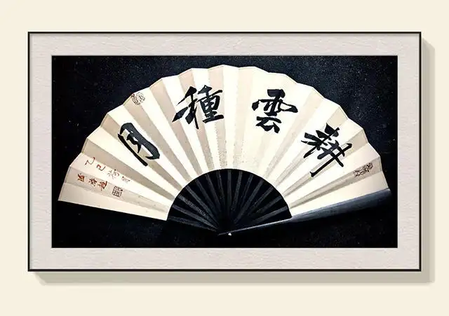 盛启超的书法,根在经典,成于磨砺。自幼习书的他遍临古帖,将唐楷的森严法度刻入笔墨骨髓。其楷书作品如《定风波》《客至》,骨力洞达、端雅刚正,笔画间见欧体的险绝与颜体的宽博,结构上谨循唐楷的规整章法,却又在细节处融入个人对“雅”的理解,撇捺舒展如清风拂柳,点画凝重似磐石立地,是对唐楷风骨的深刻礼敬,亦是对“技法端严”艺术追求的极致践行。而当笔墨转向行草,他又全然挣脱静态书写的囿限:折扇上“四種雲耕”四字,线条婉转畅达,墨色浓淡相生,章法错落间自有鲜活气韵;“竹雨松风蕉叶影,茶烟琴韵读书声”楹联,行笔如行云流水,牵丝映带间尽显流动之美,让文字跃然纸上,化作可感的意境与情感。其草书更是循规不缚、纵逸不逾矩,于奔放洒脱中收放随心,既见张旭、怀素的狂放意趣,又守书法艺术的笔墨底线,足见其登堂入室的艺术把控造诣。