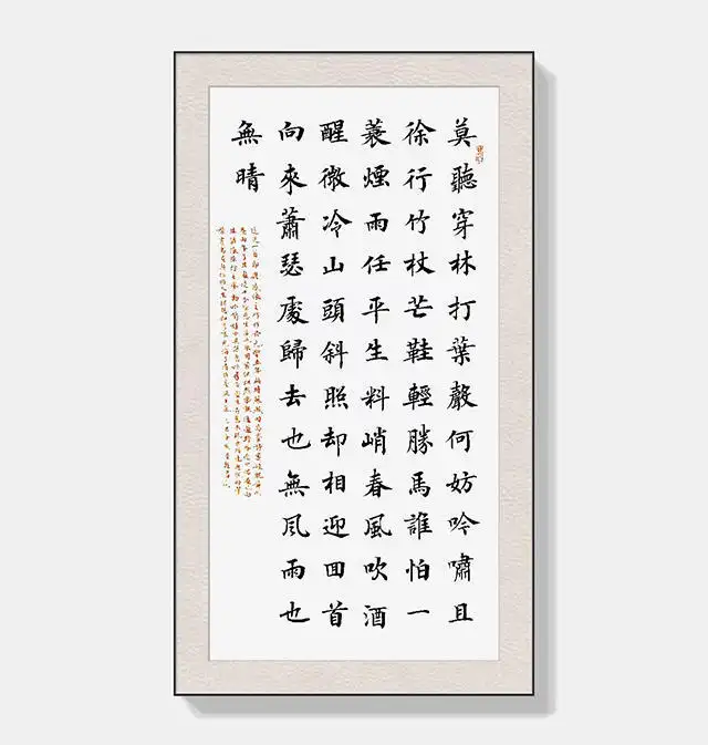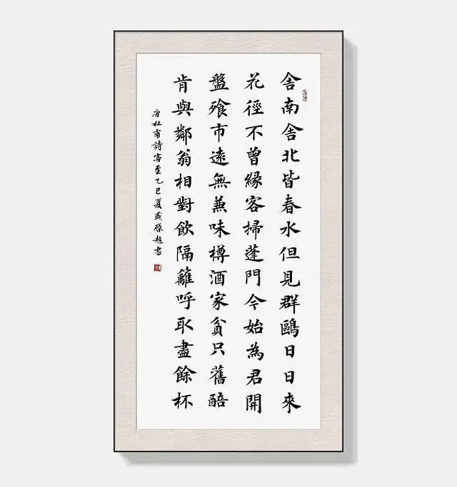 在盛启超的书法世界里,“内外浑融”是其艺术追求的核心。他技法上精益求精、务求端严规范,意境上则求笔墨与文心的和合之境。书写苏轼《定风波》,他以楷书的沉稳笔触,契合词中“一蓑烟雨任平生”的旷达心境,笔墨的端雅与词意的洒脱相互映衬;挥毫杜甫《客至》,又以温润的线条勾勒诗中邻里相邀的闲适,让书法成为诗词意境的视觉延伸。这种“以笔传情,以墨达意”的创作方式,让他的作品不止是笔墨的堆砌,更是与经典对话、与内心共鸣的艺术结晶。从全国大学生“明日之星”书法比赛特等奖,到纪念刘少奇诞辰110周年全国书画展金奖,再到作品被全国政协礼堂收藏,百余项大奖的背后,是他对“书为心画”的深刻践行。