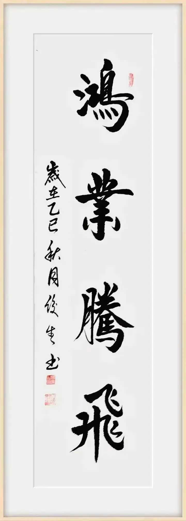 吴俊生自幼研习书法,深耕传统碑帖,形成雄浑大气、刚柔并济的艺术风格。其作品融合碑学的厚重与帖学的灵秀,注重线条的节奏感与空间的层次感,既传承古法精髓,又彰显时代创新精神。