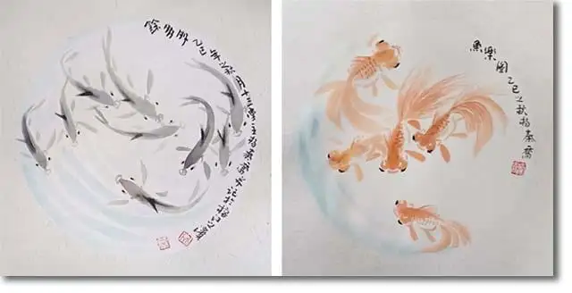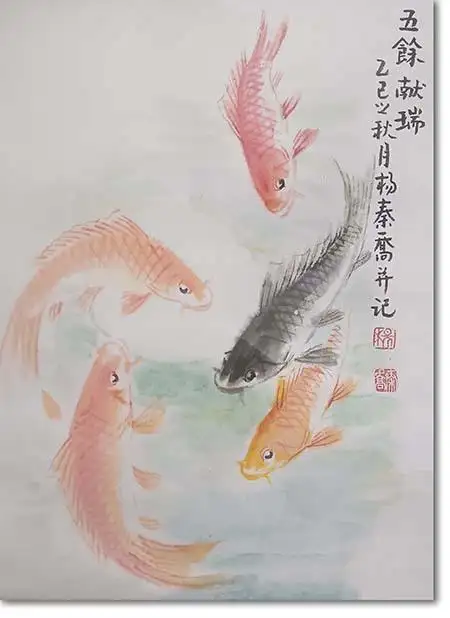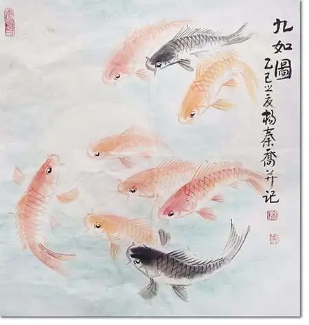 一幅《九如圖》,既是杨秦乔数十年笔墨修行的成果,也是传统花鸟画在当代焕新的缩影——它不只是一纸游鱼,更是传统美学与当代生活的温柔对话,这正是其超越技法之外的深层价值。