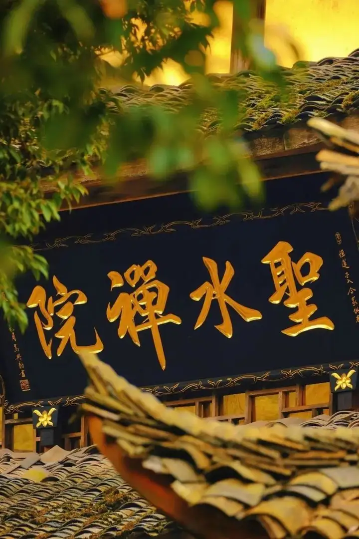 “圣水禅院”匾额的四个字,气势磅礴,立意高远。笔画灵动,流畅自然,流动之美倾泻而出,颇赋生动意态和活泼生机。书者匠心独运,字与境合,书法之美,文字之义,地理之灵,三者完美融合,使其精湛的艺术技巧、深厚的文化内涵与清幽的自环境浑然一体,相得益彰,吸引着无数游客和书法爱好者争相观赏和体悟。当香客在匾额下屏息凝视时,恍惚觉得:这四个字并非刻在木匾上,而是峨眉山千年云雾自然凝结而成,是宁静清幽的自然环境的文字化身。