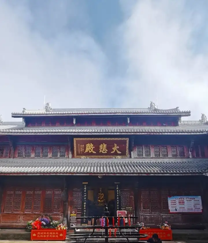 高兴勤先生是一位活跃于当代书坛的书法家。他既能从唐楷法度和魏晋风韵中汲取养分,又融入现代审美意识,形成端庄而不失灵动、凝重而内含秀逸的风格。“大悲殿”三字,笔法沉实圆融,力透纸背;结体宽博敦厚,动静相宜;章法浑然一体,气象正大。这是他将个人风格、佛教义理与名山气象完美融合的一次艺术创造。此匾的风格与赵朴初大先生题写的“华藏寺”之圆融、集柳公权字的“金顶”之铁骨既和而不同,又相辅相成,共同构成了金顶丰富的文化景观。过往游客中的书法同仁无一不驻足细玩品鉴。