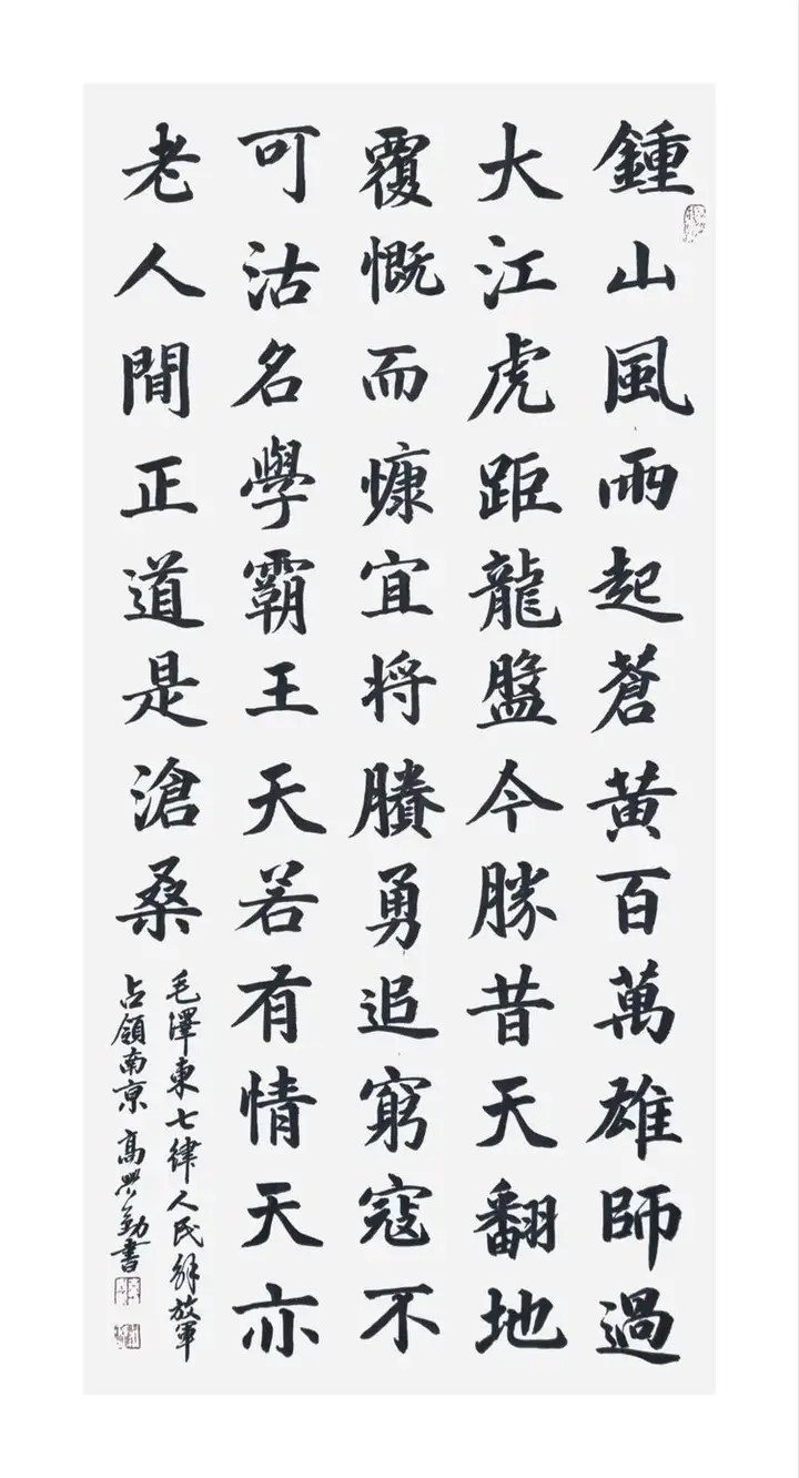 现今,高兴勤先生但凡临案挥毫,每幅作品看似都轻松地心手双畅,一气呵成,实则是书者将阅世知人的诗书涵养,通过千锤百炼的技艺,瞬息间“提炼”和“迸发”出文字的神韵。字如其人,这也是书者精气神的自然流淌。然而,世人只见其“成如容易”,哪知背后的“艰辛”磨炼!