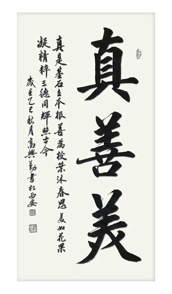 高兴勤先生始终秉持墨润苍生的初心,崇尚“笔法为骨,气韵为魂,文化为根,雅俗之辨”的核心价值观,用书法展示新境界,传递真善美,反哺老百姓,惠及千万家。并将汉字书法与藏文典籍意象结合,实现了“传统文化与现代审美的创新表达”。