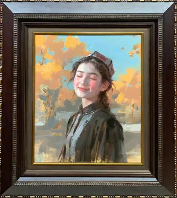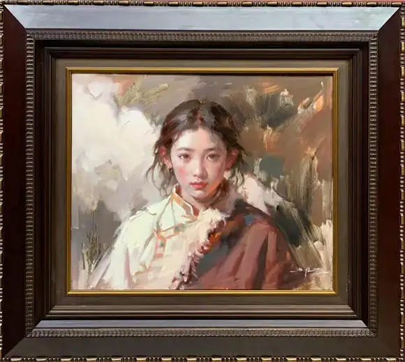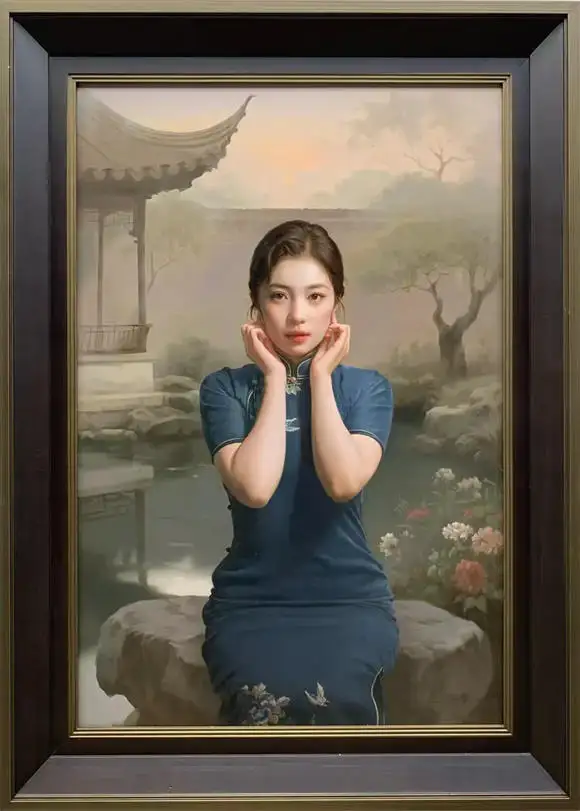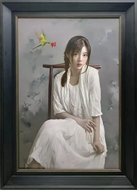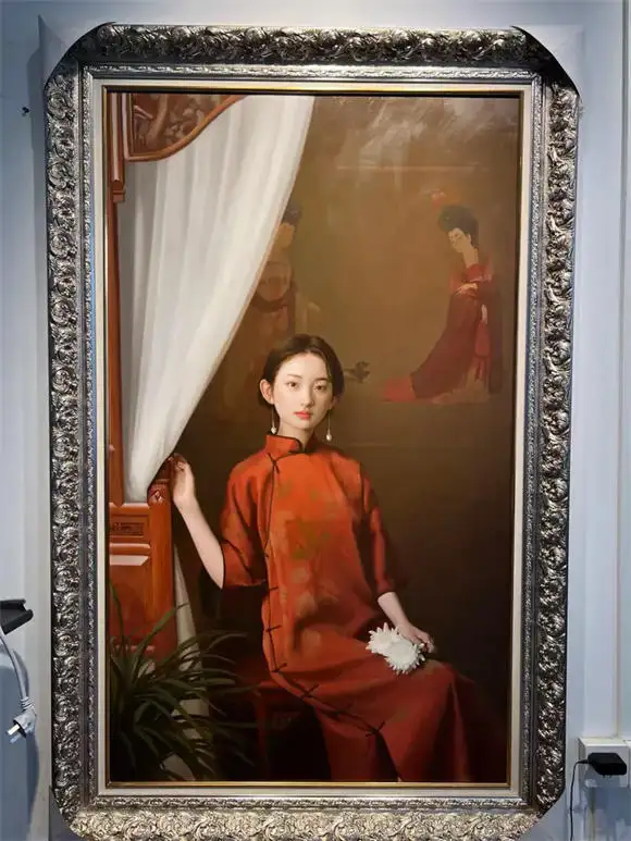 以西方古典技法为根基,刻画东方女性神韵;注重光影质感与情感表达,营造诗意典雅氛围。
