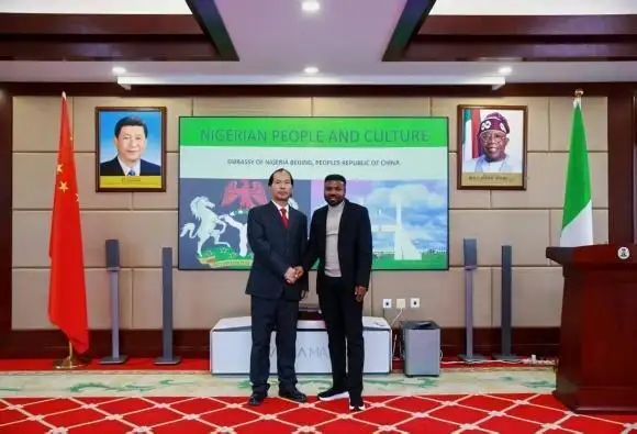 - 赖晨岳与尼日利亚大使馆官员亲切握手