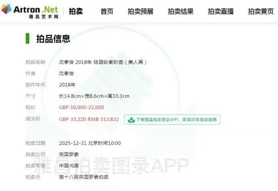 此次珐琅彩紫砂壶(美人肩)的高价成交,不仅是对沈孝俊个人艺术成就的肯定,也是对中国传统紫砂艺术的一次有力推广。我们期待沈孝俊在未来能够创作出更多优秀的紫砂作品,为紫砂艺术的传承与发展贡献更多的力量。