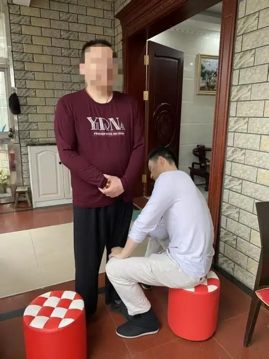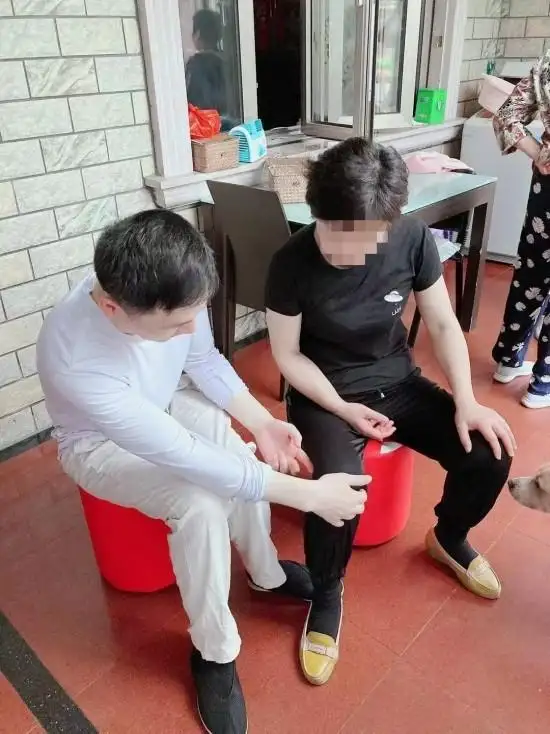 2022年,经人介绍,50岁左右的凌先生找到了徐永伟。凌先生被腰疼腿疼困扰许久,严重到无法站立行走,曾先后前往上海多家医院,骨科特色医院,依旧查不出具体问题,只能得到回家静养或打封闭针的建议。此时凌先生已卧床不起,徐永伟便上门施治。凭借金胎掌疏通经络的独特手法,调理过后,凌先生当即就能下床活动。后续凌先生每周前往工作室调理,每周一次,历时两个月,困扰已久的腰腿疼痛彻底痊愈。