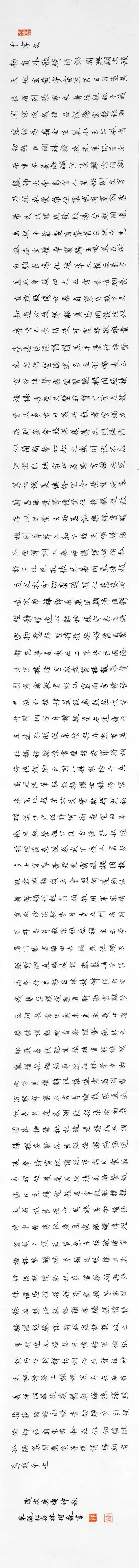 《秦石鼓文》长卷临本,规格550cmx34cm.该作品选彔首段和尾段。