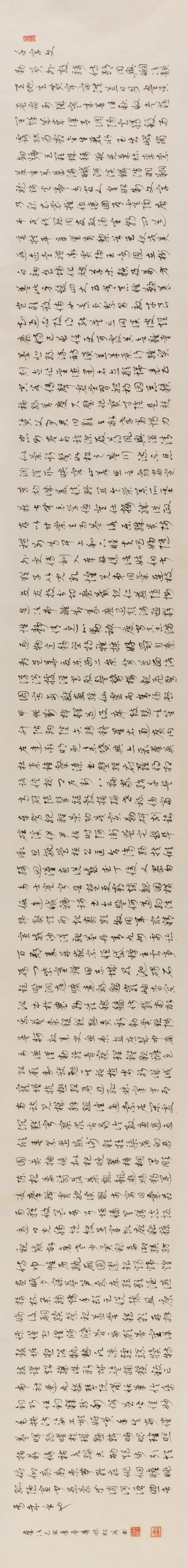 蝇头小草(千字文)规格138cmx15cm.(该作品用生宣纸创作的)。