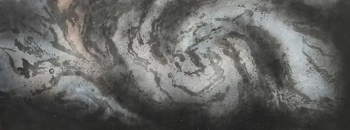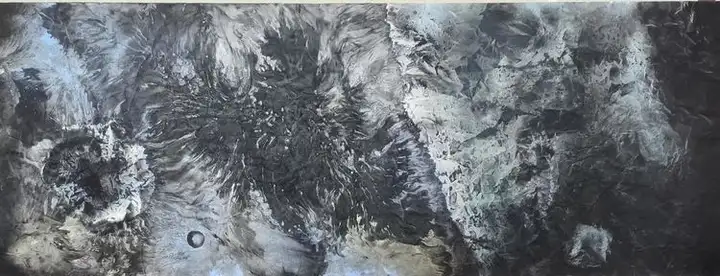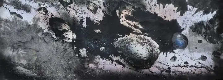 孙晓东的画作,笔力雄浑,墨韵灵动,每一处山峦的起伏、每一条河流的蜿蜒,都仿佛蕴含着天地间的灵气,他隐于民间,从不追求名利,却出手不凡。他创作出人类历史上最大的中国水墨艺术绘画作品。而且题材之新,前所未有,篇幅之大,旷古绝今。这幅画,就是堪称世界之最的《宇宙、陨石系列、星河》!