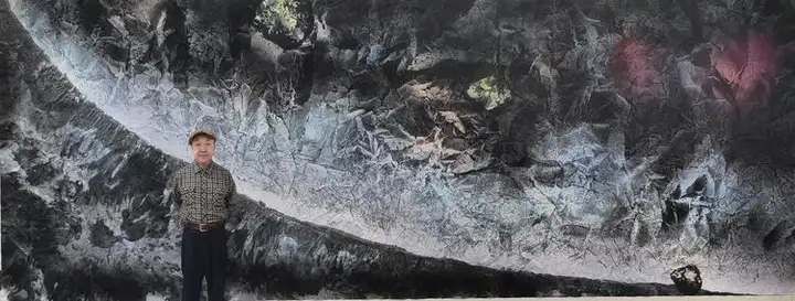 终于,一部震撼人心的《宇宙、陨石系列、星河》作品诞生了。这部巨制,高度2米40 ,长度达450米,面积达1080平方米(近万平方尺)。在中国绘画历史上这是一幅个人创作的最大的绘画艺术作品,比中国艺术巨匠张大千先生的巨作《长江万里图》大九十倍,甚至比意大利文艺复兴时期的艺术巨匠米开朗基罗在梵蒂冈西斯廷教堂创作的巨幅壁画《创世纪》还要大出很多。这幅画的出现填补了中国水墨画在技法方面的多项空白,开启了中国绘画向外太空领域探索的先河。结合当今人类向外太空探索的步伐,使绘画走向了太空深处,有着更广泛的时代意义。