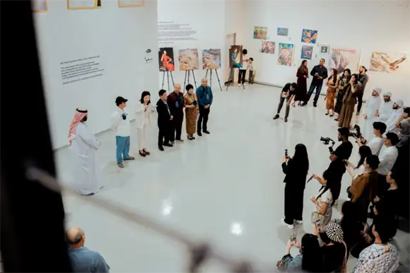 开幕式上,主办单位代表与艺术家代表先后致辞,阐述了展览的核心意义。中国当代国画家协会代表表示,丝绸之路作为古代连接东西方的文明动脉,积淀了深厚的文化交融基因,此次展览以“丝路华韵•瀚海听心”为主题,正是希望以艺术为桥,让中国当代艺术的独特魅力在海湾之滨绽放,让中阿两国人民通过画笔读懂彼此的心灵世界。