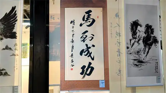 在阿联酋国际艺术大展的现场,王景召书法作品《马到成功》一经亮相便吸引众多中外观众驻足品鉴。来自中东的观众虽不懂中文,却能从作品的的笔墨线条与悠然意境中,读懂中国书法的独特魅力,感受中国传统文化的博大精深,这幅作品打破了语言与文化的壁垒,让中阿观众在艺术共鸣中增进理解,它不仅是一幅书法佳作,更是中阿文化交流的鲜活纽带,让中国传统文化走出国门,让丝路精神在笔墨间焕发生机。