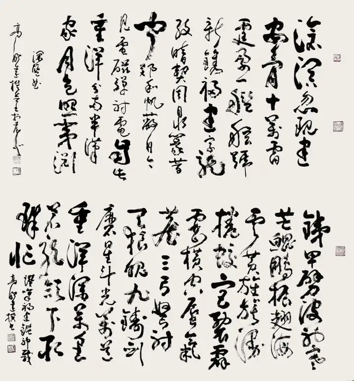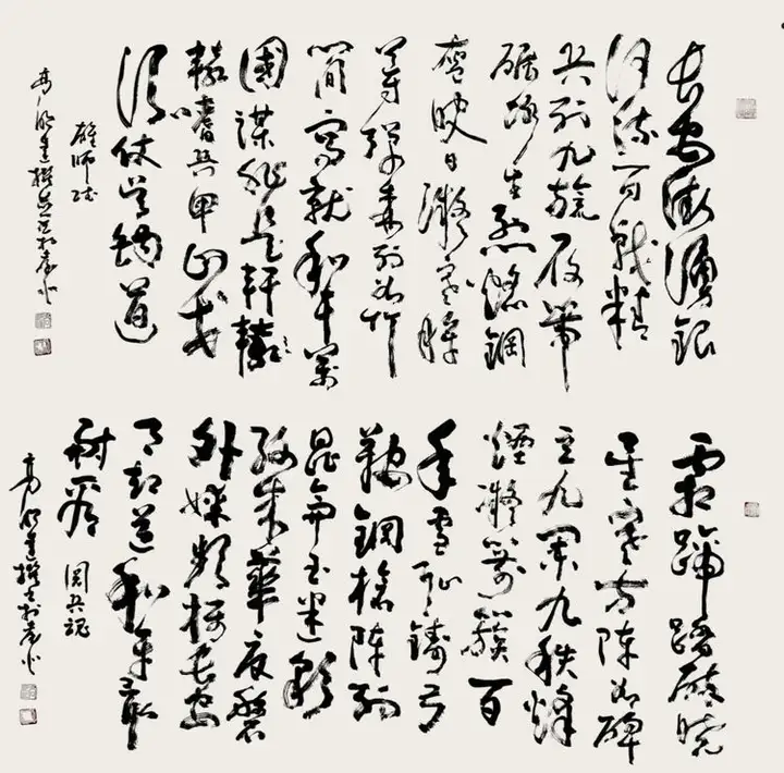 从艺术表现手法来看,高明达深谙传统书法之精髓,又勇于突破常规,大胆创新。他将自己对生活的感悟、对自然的热爱以及对人生的思考,都融入到笔墨之中。在他的笔下,书法不再是简单的文字书写,而是一种情感的宣泄、一种精神的寄托。观其作品,能感受到他对传统文化的敬畏与传承,同时也能捕捉到他对现代艺术元素的巧妙融合。