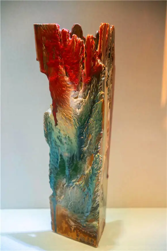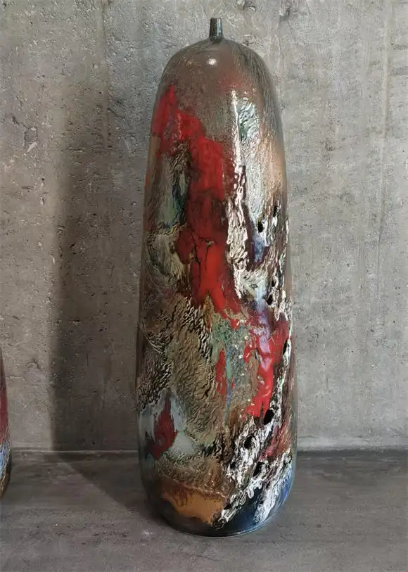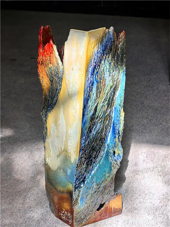 在陶瓷创作领域,樊鸿宾以“窑变”为核心媒介语言,将火焰与时间的交融痕迹定格于瓷胎之上。他以彩釉为笔墨,借高温窑火的淬炼,催生出自然流动的肌理与色层,营造出“动中有静,静中有韵”的东方美学意境。“陶瓷创作不只是匠艺,而是与自然的对话。窑炉的不确定性,恰好让艺术拥有生命的呼吸。”樊鸿宾的创作理念,尽显“天人合一”的中国哲学精神。他擅长在釉色的可控与不可控之间寻找平衡,让每一件陶瓷作品都成为独一无二的艺术孤品。