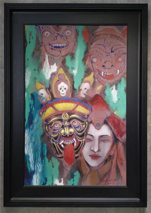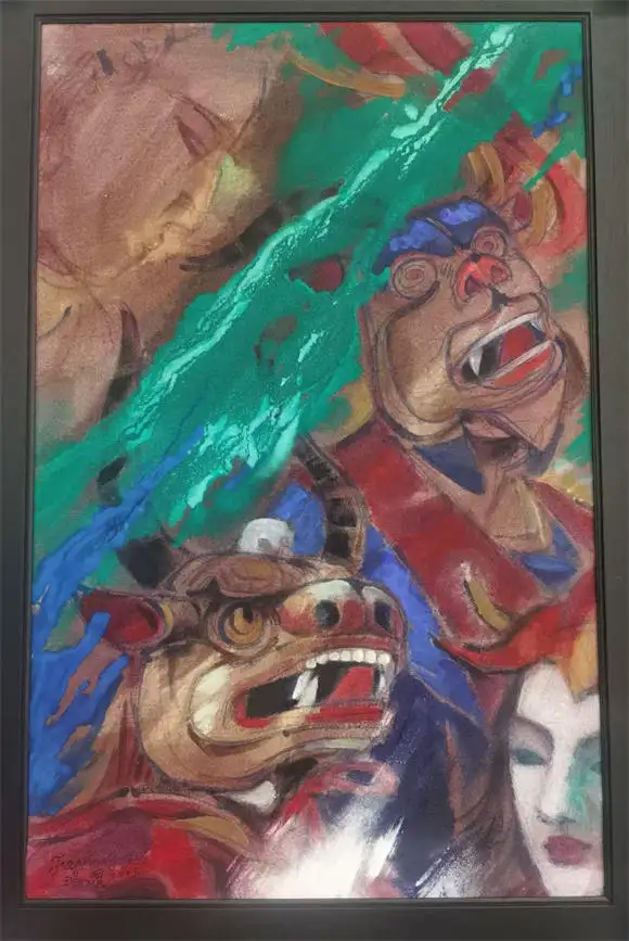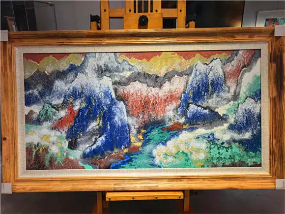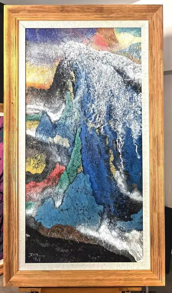 彩墨绘画系列则延伸了他早期“阳光高原”的创作脉络,以明快大胆的色彩与开放灵动的构图,打破传统水墨单一灰阶的视觉局限,赋予画面强烈的光感与生命律动。从“赛装节”的民族风情到“红云大地”的壮阔意象,他的笔触游走于具象与抽象之间,将对自然的敬畏与对民族精神的感悟融入笔墨色彩之中,构建出充满诗意的艺术空间。艺术评论家王凯评价:“樊鸿宾的创作,是中国绘画语言的一次再定义。他不固守技法,而以思维的开放性重构‘色’与‘墨’之间的关系,使中国画在当代语境中获得新的表现层次。”